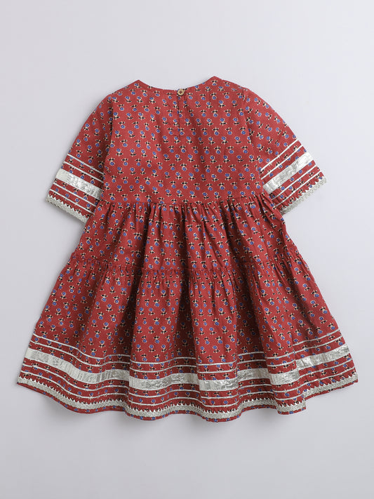 The Magic wand Elbow Sleeve Floral Printed Dress-Maroon