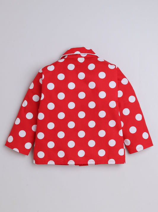 The Magic Wand Half Sleeves Polka Dot Print Night Suit Set Red