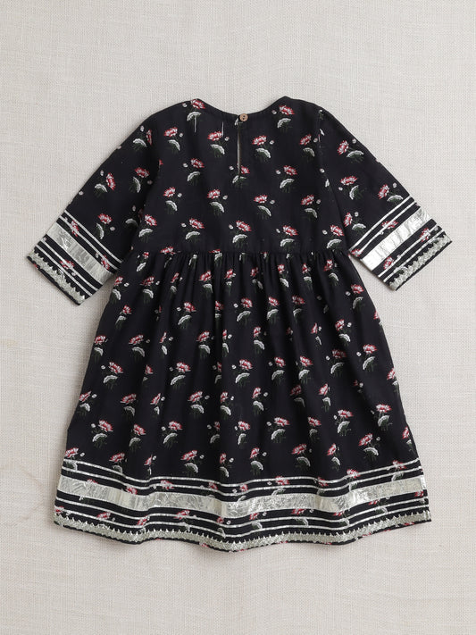 The Magic Wand Half Sleeves Floral Print Alia Cut Kurta Set-Black