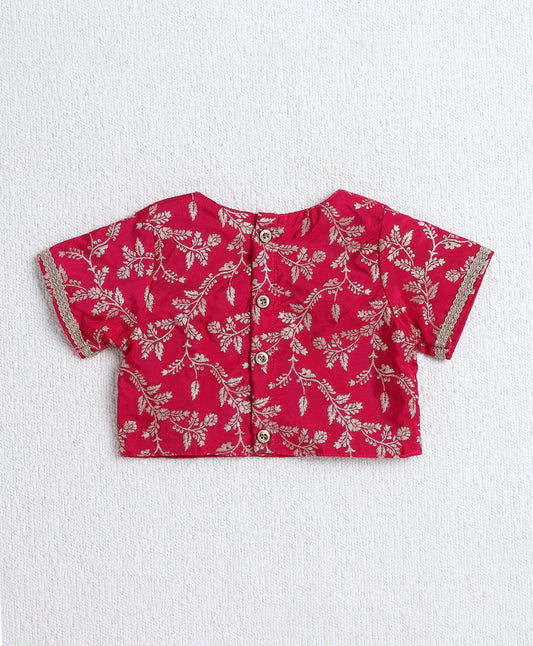 The Magic Wand Jacquard Half Sleeves Choli and Lehenga Set with Dupatta - Fuchsia