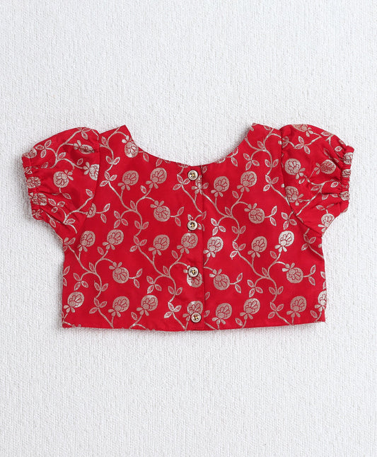 The Magic Wand Jacquard Woven Puff Sleeves Leaves Foil Printed & Gota Lace Embellished Choli Lehenga With Dupatta Set- Red