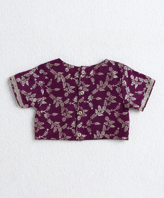 The Magic Wand Jacquard Woven Half Sleeves Leaves Foil Printed & Gota Lace Embellished Choli Lehenga With Dupatta Set-Purple