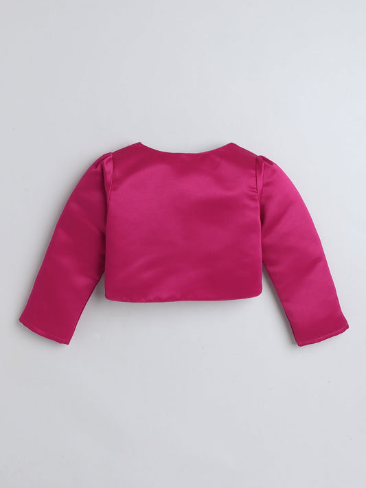 The Magic Wand Satin Full Sleeve Solid Bolero Shrug With Brooch Fuchsia