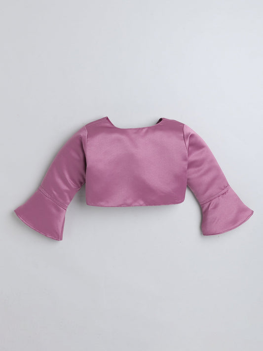 The Magic Wand Satin Three Fourth Sleeves Solid Bolero Shrug With Brooch Pink