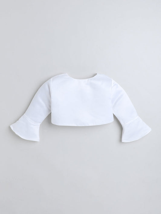 The Magic Wand Satin Three Fourth Sleeves Solid Bolero Shrug With Brooch White