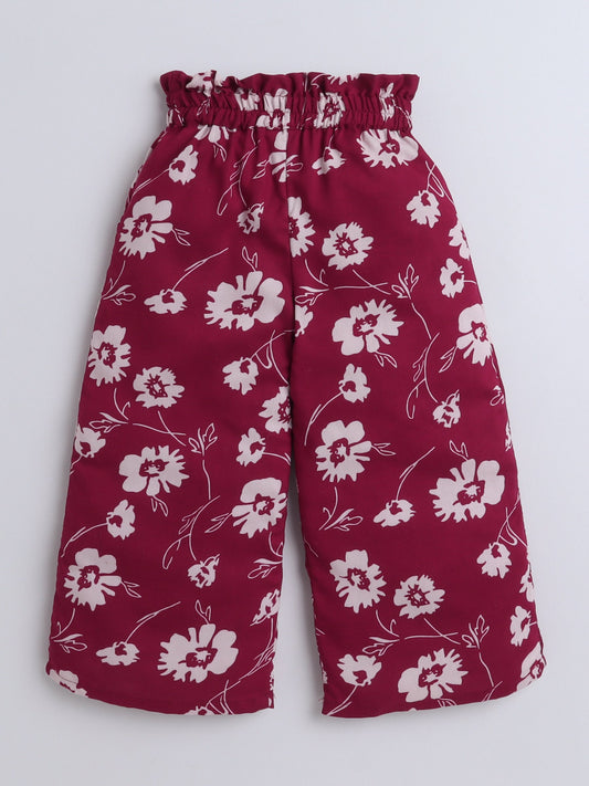 The Magic Wand Rayon Floral Printed Full Length Palazzo With Lace Bow Maroon