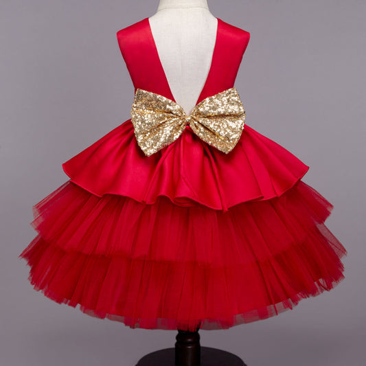 The Magic Wand Sleeveless Sequins Embellished Tiered Dress with Bow - Yellow