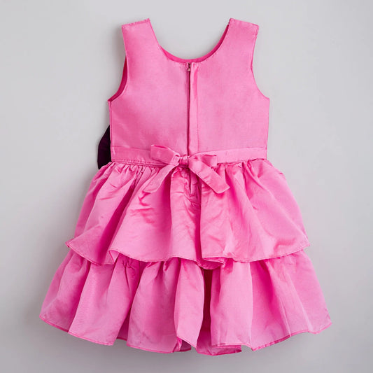 The Magic Wand Sleeveless Solid Tiered Frill Cotton Dress Pink