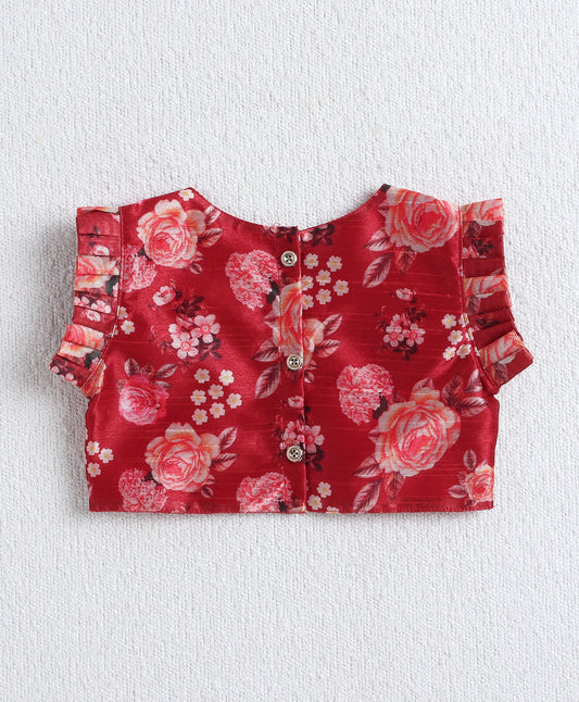 The Magic Wand Woven Frill Slevees Digital Printed Choli and Lehenga set with Dupatta- Maroon