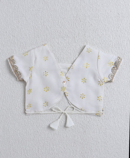 The Magic Wand Woven Half Sleeves Bandhani Printed Choli & Lehenga Set with Dupatta- White