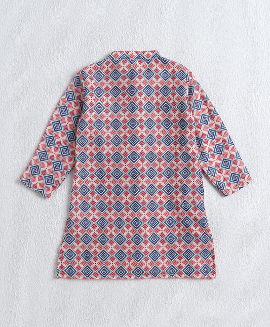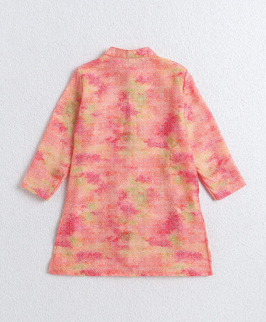 The Magic Wand Woven Full Sleeves AII Over Printed Kurta and Pyjama Set- Peach