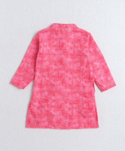 The Magic Wand Woven Full Sleeves Digital Printed Kurta & Pyjama Set- Pink