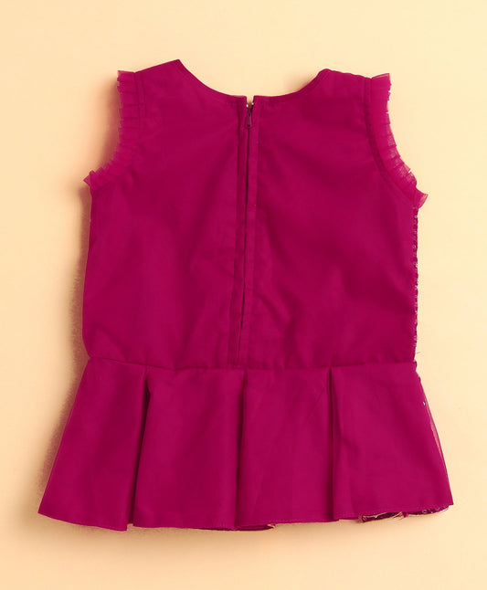 The Magic Wand Woven Sleeveless Foil Printed Incut Top and Bottom Set- Fuchisa