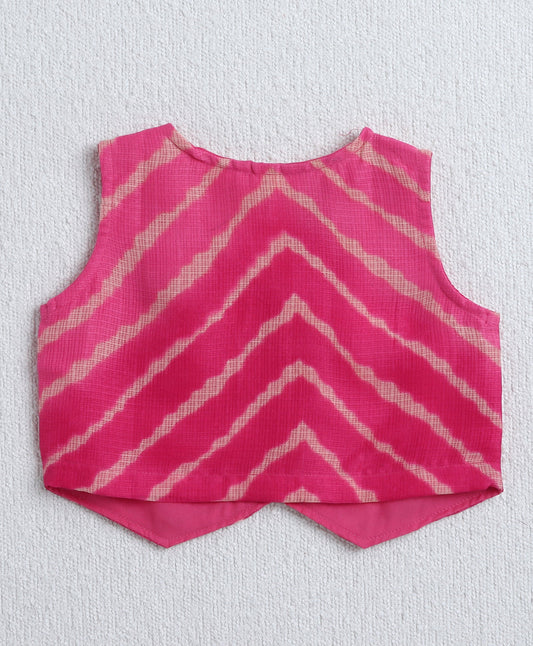 The Magic Wand Woven Sleeveless Leheriya Printed Gota Lace Embellished Kurta and Sharara Set- Fuchsia