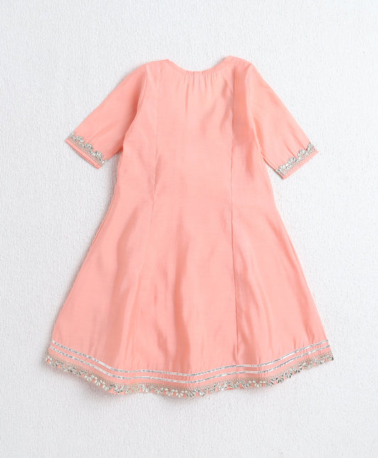 The Magic Wand Woven Three Fourth Sleeves Angrakha Style Kurta and Bottom- Peach