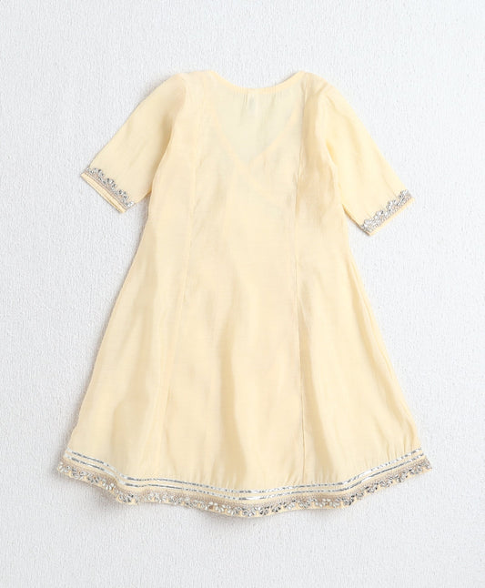 The Magic Wand Woven Three Fourth Sleeves Angrakha Style Kurta and Bottom- Yellow
