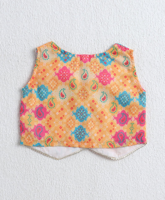 The Magic Wand Woven Sleeveless Leheriya Printed Gota Lace Embellished Kurta and Sharara Dupatta Set- Orange