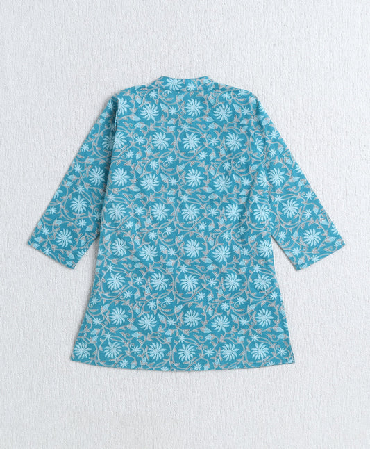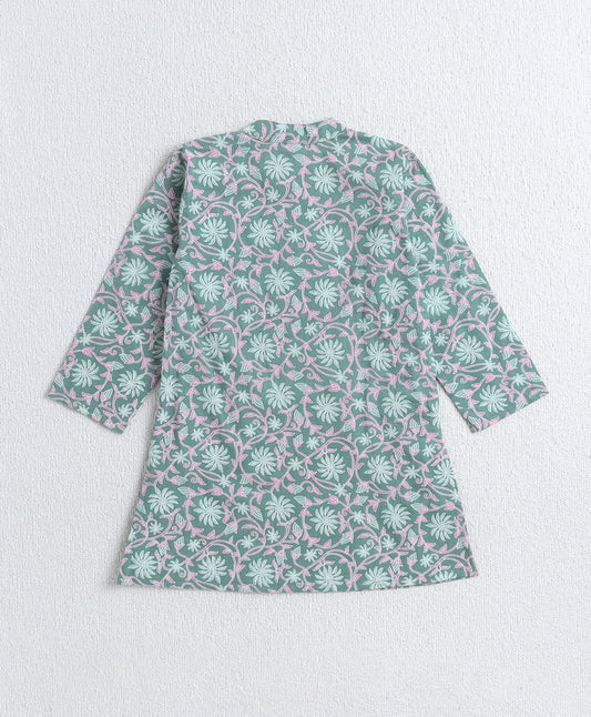 The-Magic-Wand-Cotton-Woven-Full-Sleeves-Floral-Printed-Kurta-&-Pyjama-with-Jacket-Set--Sea-Green