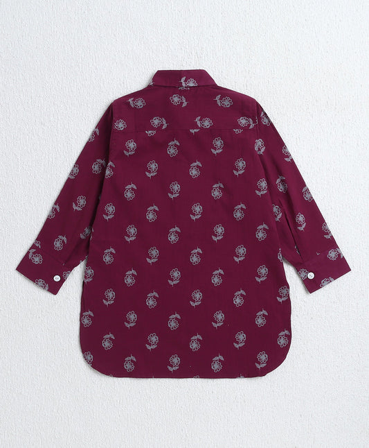 The-Magic-Wand-Cotton-Woven-Full-Sleeves-Floral-Printed-Kurta-and-Pyjama-Set---Wine
