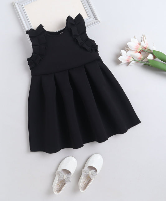 The Magic Wand Woven Ruffle Sleeves Pleated Scuba Party Dress - Black