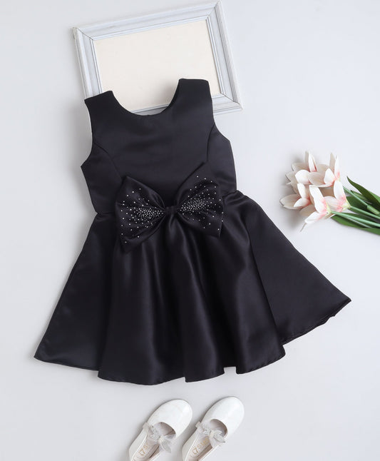 The Magic Wand Woven Sleeveless Stone Embellished Bow Applique Detailed Dress - Black