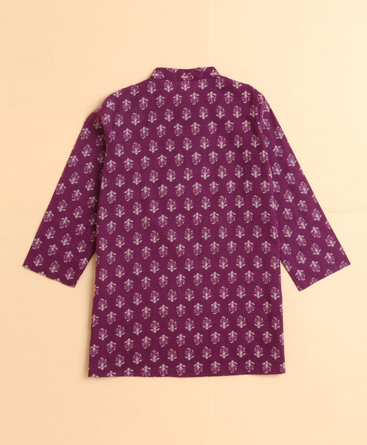 Cotton All over Printed Full Sleeves Short Kurta-Wine