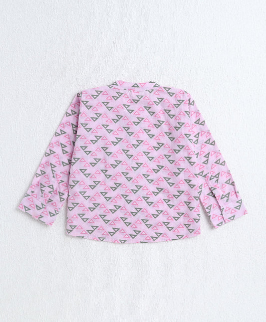 Cotton Hand Block Printed Full Sleeves Kurta with Pyjama Set - Pink