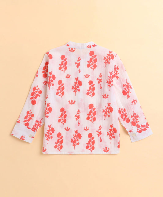 Cotton Woven Full Sleeves Floral Prinetd Kurta with Pyjama Set- Pink