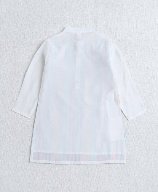 Cotton Woven Full Sleeves Stripe Printed Short Kurta- Teal Blue
