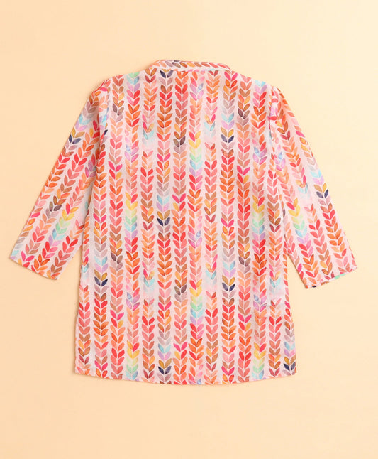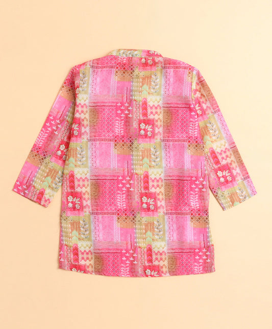 The Magic Wand Cotton Woven Full Sleeves AII Over Printed Short Kurta- Pink