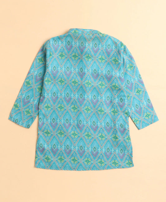 Cotton Geometric Printed Full Sleeves Kurta with Pyjama Set-Blue