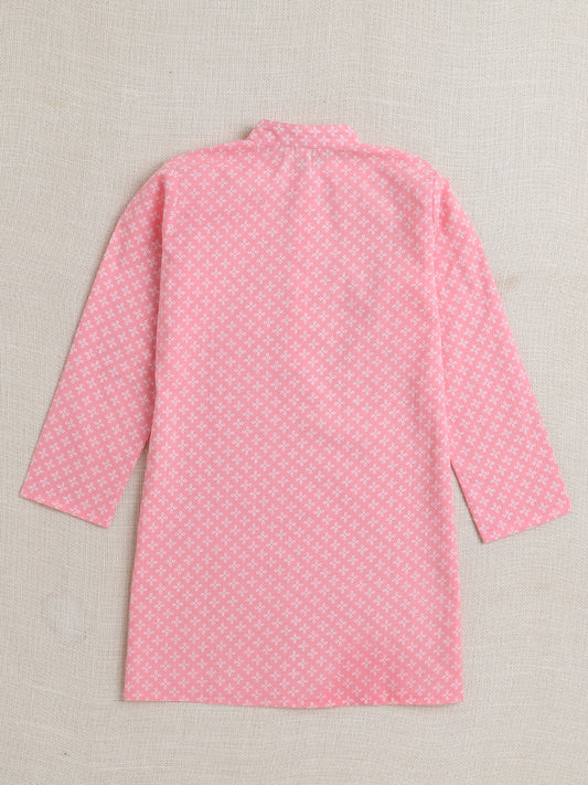 Full Sleeves Floral Printed Kurta With Pyjama-Pink