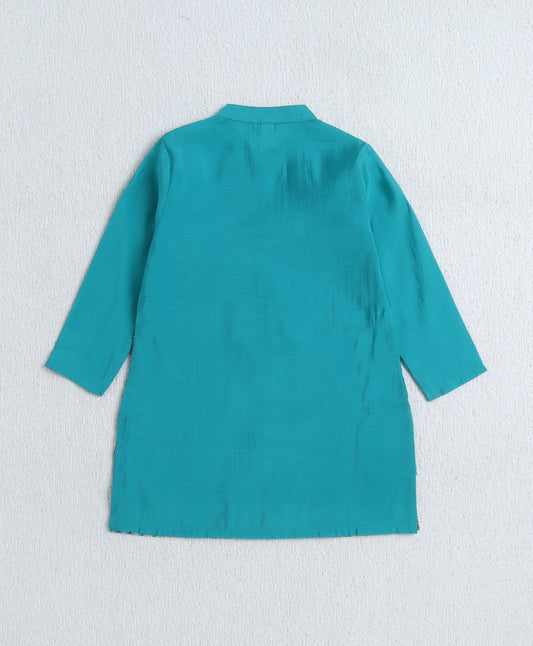 Woven Full Sleeves Sequin Embroidery Work Kurta and Pyjama Set - Turquoise Blue