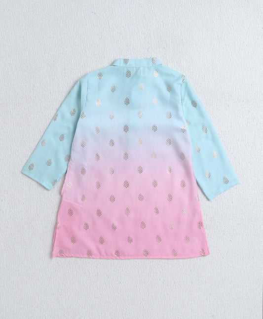 Woven Full Sleeves Foil Printed Kurta and Pyjama Set- Blue