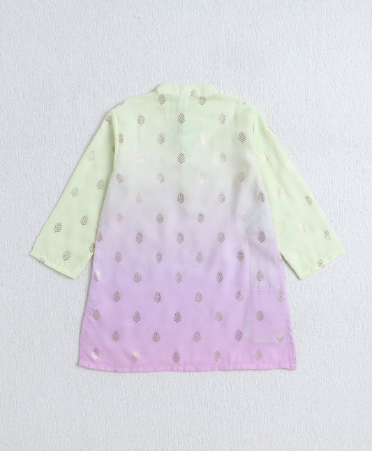 Woven All Over Printed Full Sleeves Kurta with Pyjama Set - Green