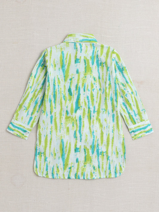 Cotton Full Sleeves Tie Dye Kurta With Pyjama Set - Green