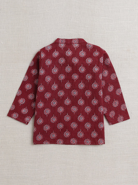 Full Sleeves Floral Printed Kurta With Dhoti Set - Maroon