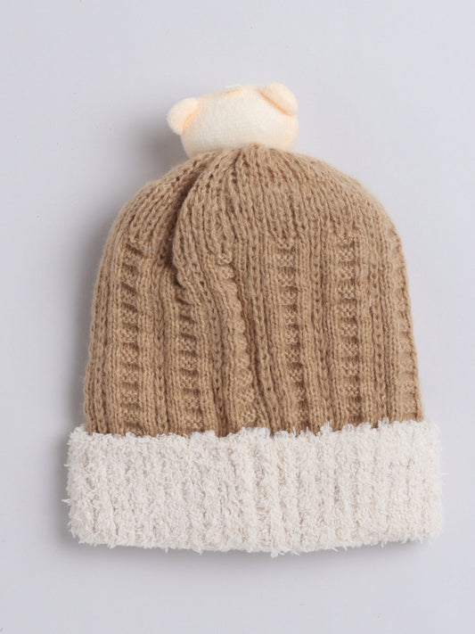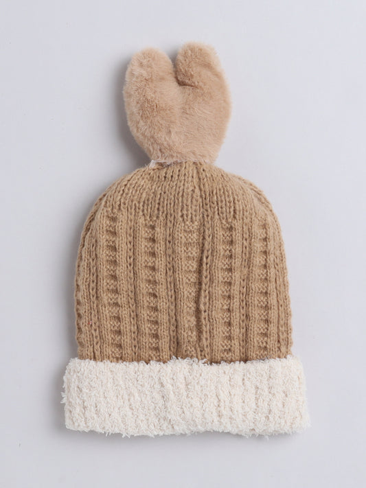 Kids Woolen Cute Bunny Ear Applique Cap - Brown