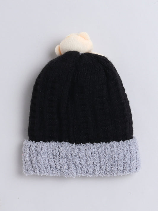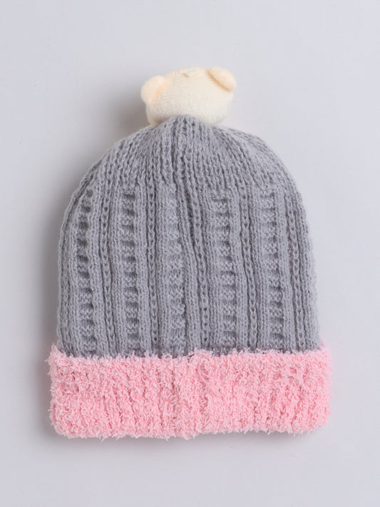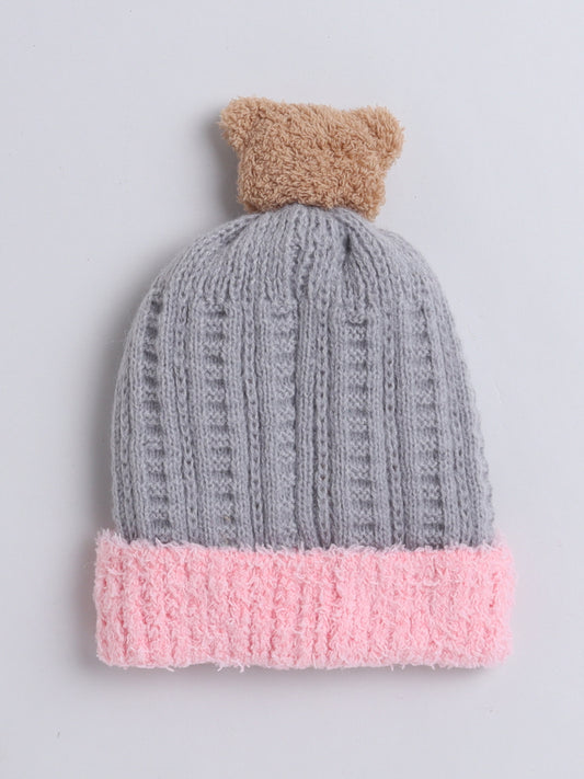 Kids Woolen Cute Bear Face Applique Cap - Grey