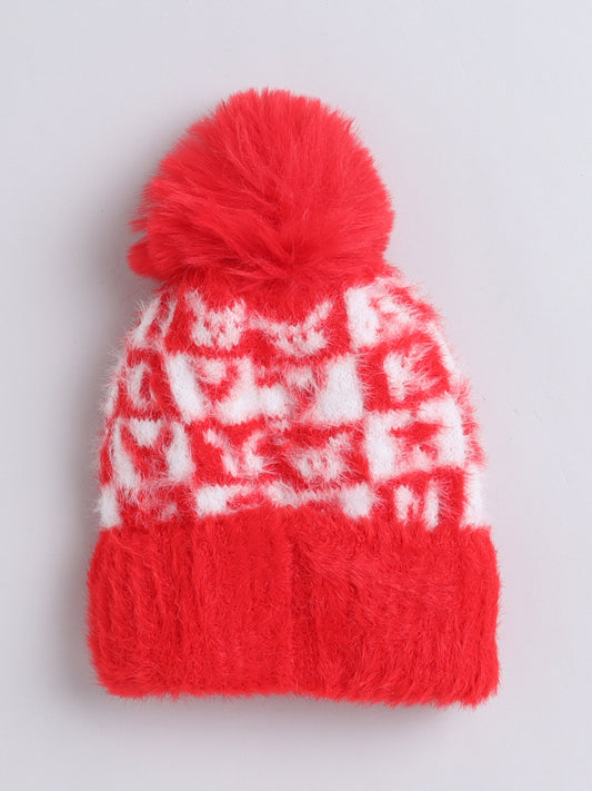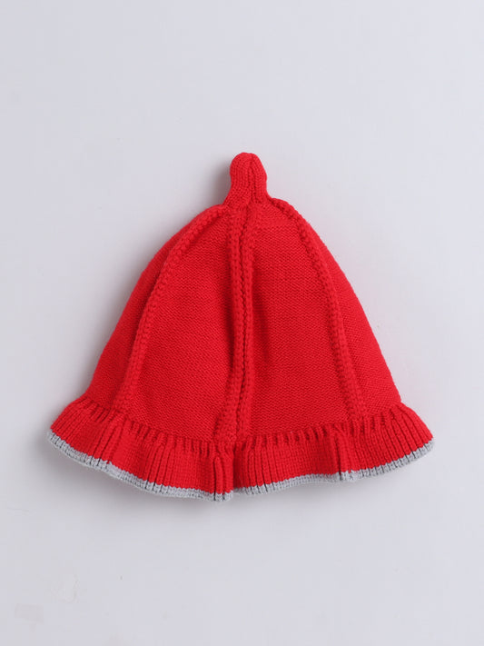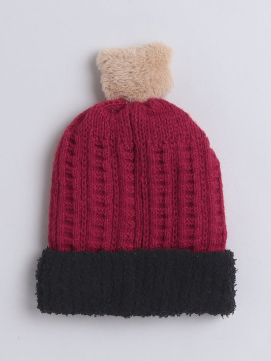 Kids Woolen Cute Bear Applique Cap - Maroon
