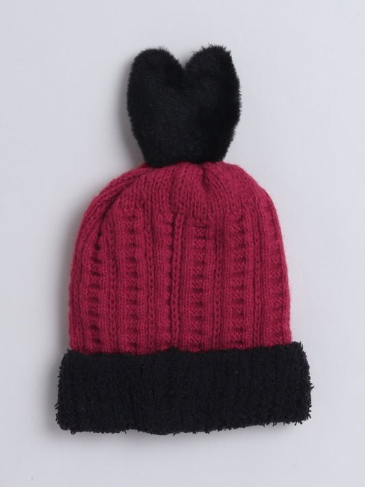 Kids Woolen Cute Bunny Ear Applique Cap - Maroon