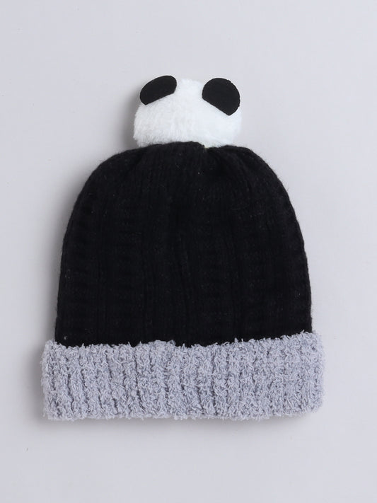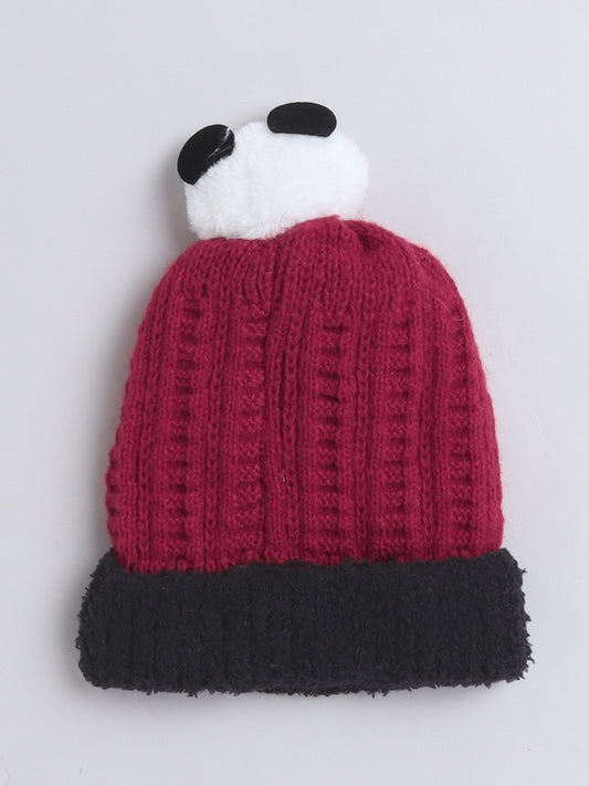 Kids Woolen Cute Panda Applique Cap - Maroon