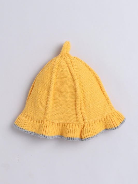 Kids Woolen Cute Carrot Applique Cap With Pom Pom - Mustard