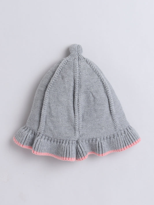 Kids Woolen Cute Carrot Applique Cap With Pom Pom - Grey