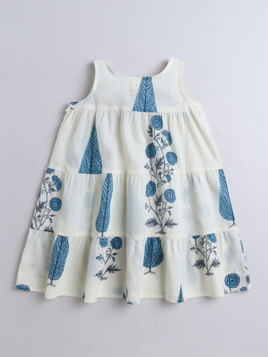 The Magic Wand Cotton Floral Printed Sleeveless Tiered Dress - Blue