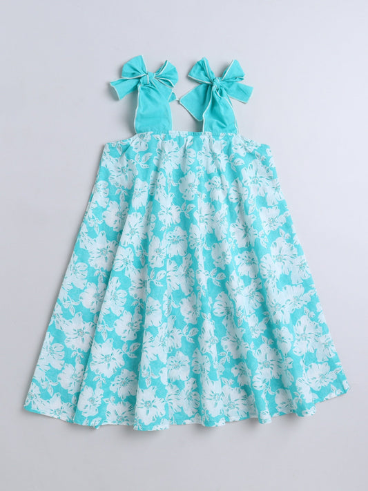 The Magic Wand Cotton Tie Up Floral Printed Dress Blue