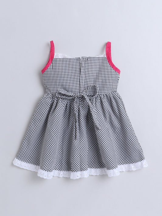 The Magic Wand Checks Printed Strappy Bow Detail Dress - Black