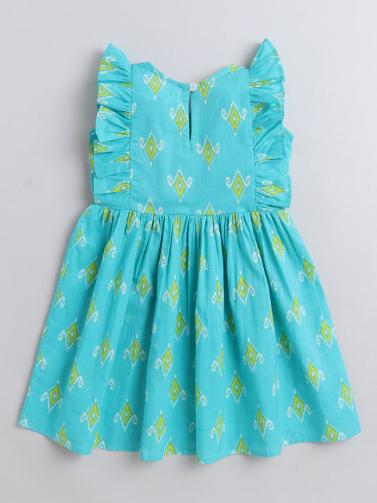 The Magic Wand Frill Sleeves Floral Printed Fit & Flare Dress - Turquoise
