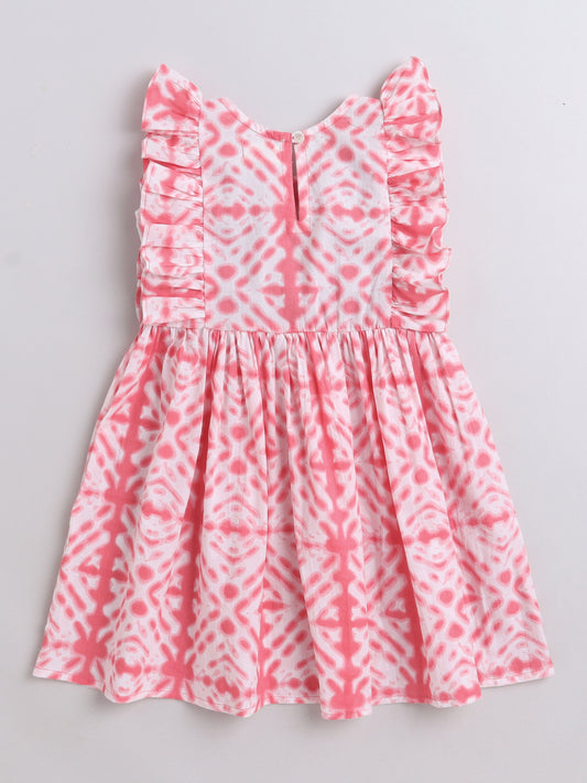 Cotton Frill Sleeves Tie & Dye Printed Fit & Flare Dress - Pink