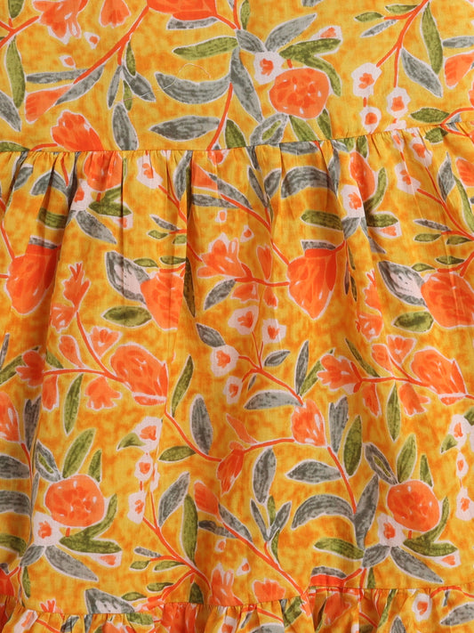The Magic Wand Singlet Floral Printed Cotton Sustainable Sleeveless Strappy Tiered Dress - Mustard